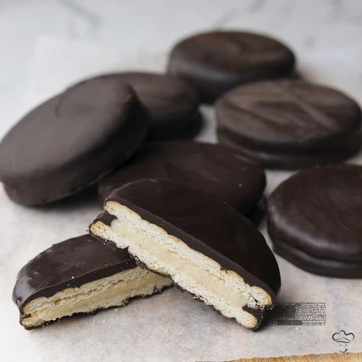 Deep these into 100 gm chocolate compound, coat the biscuits properly with chocolate.