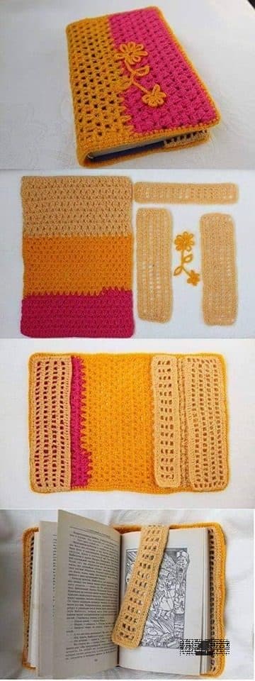 CROCHET BOOKCOVER WITH BOOKMARKER