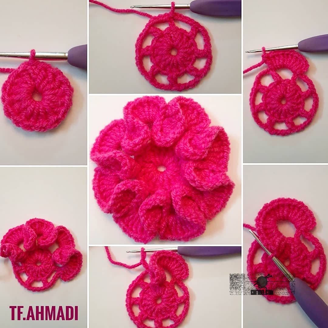 CROCHET COLORFUL PINK FLOWER PATTERN