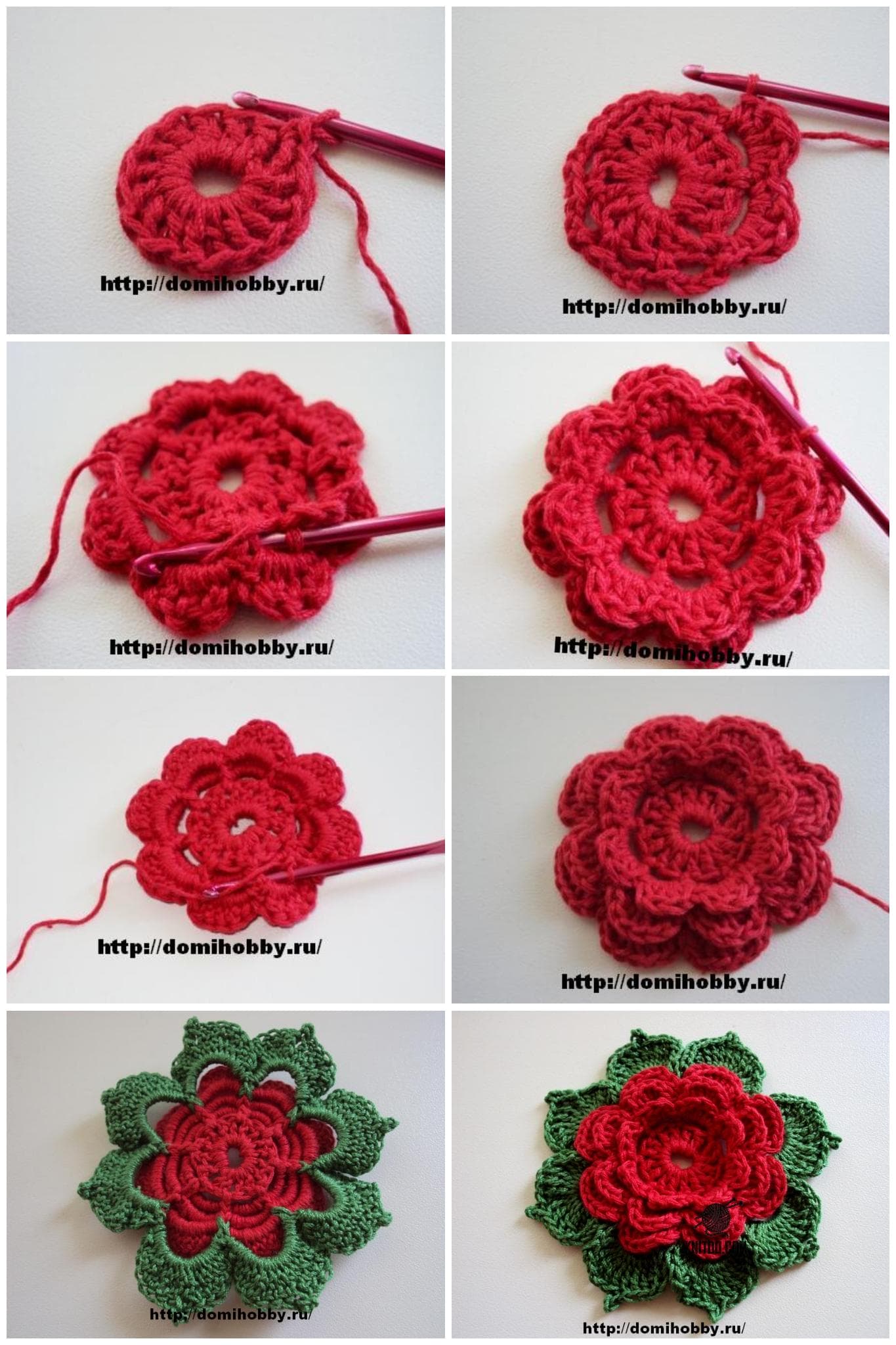 Crochet Colorful Red And Green Flowers With leaves
